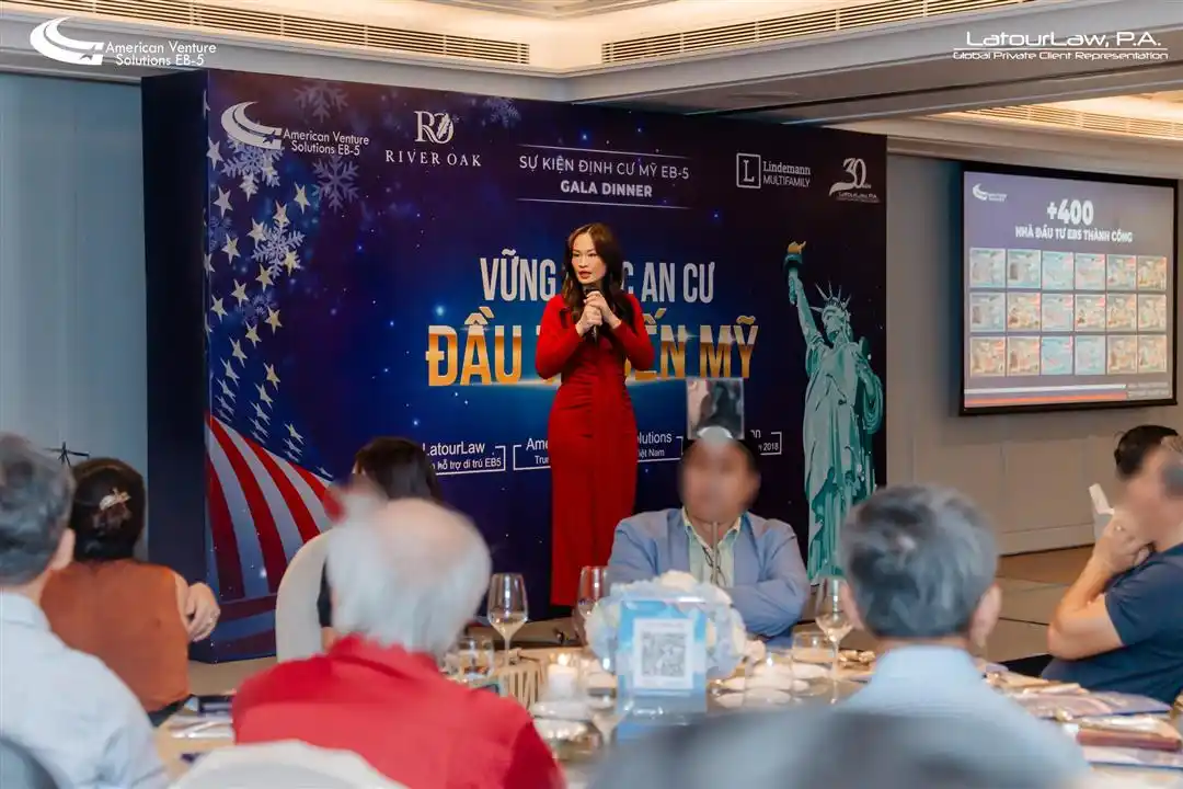 Ngày 10/12/2023 vừa qua, sự kiện định cư Mỹ VỮNG BƯỚC AN CƯ – ĐẦU TƯ ĐẾN MỸ được Trung tâm vùng AVSEB5 tổ chức bữa tiệc cuối năm nhằm tri ân các Nhà đầu tư đã thành công chinh phục Giấc mơ Mỹ và những nhà đầu tư mới đang quan tâm đến dự án EB5 River Oak để nhận thẻ xanh định cư cả gia đình.