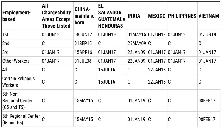 Bảng tin thị thực di dân tháng 4/2020. Nguồn : Bộ Ngoại giao Mỹ
