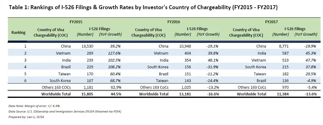 Đến nay, Trung Quốc không còn đơn độc trong nhóm quốc gia cá biệt dùng vượt hạn mức EB-5 khi Việt Nam đã chính thức đối mặt tình trạng tồn đọng hồ sơ từ tháng 5/2018. Theo số liệu thống kê của NVC, tính từ tháng 4/2016 đến tháng 3/2017, Việt Nam có 450 hồ sơ xin cấp thị thực, và con số này lên tới 1,140 hồ sơ từ tháng 4/2017 đến tháng 3/2018. Với số lượng tăng hơn 153%, thời gian dự kiến chờ thẻ xanh điều kiện của nhà đầu tư sẽ có thể lên đến 4 năm nếu quy trình xử lý hồ sơ không được cải tiến. Tiếp theo, Ấn Độ có thể bắt đầu được tính thời gian ngừng xử lý hồ sơ mới từ tháng 6/2019.