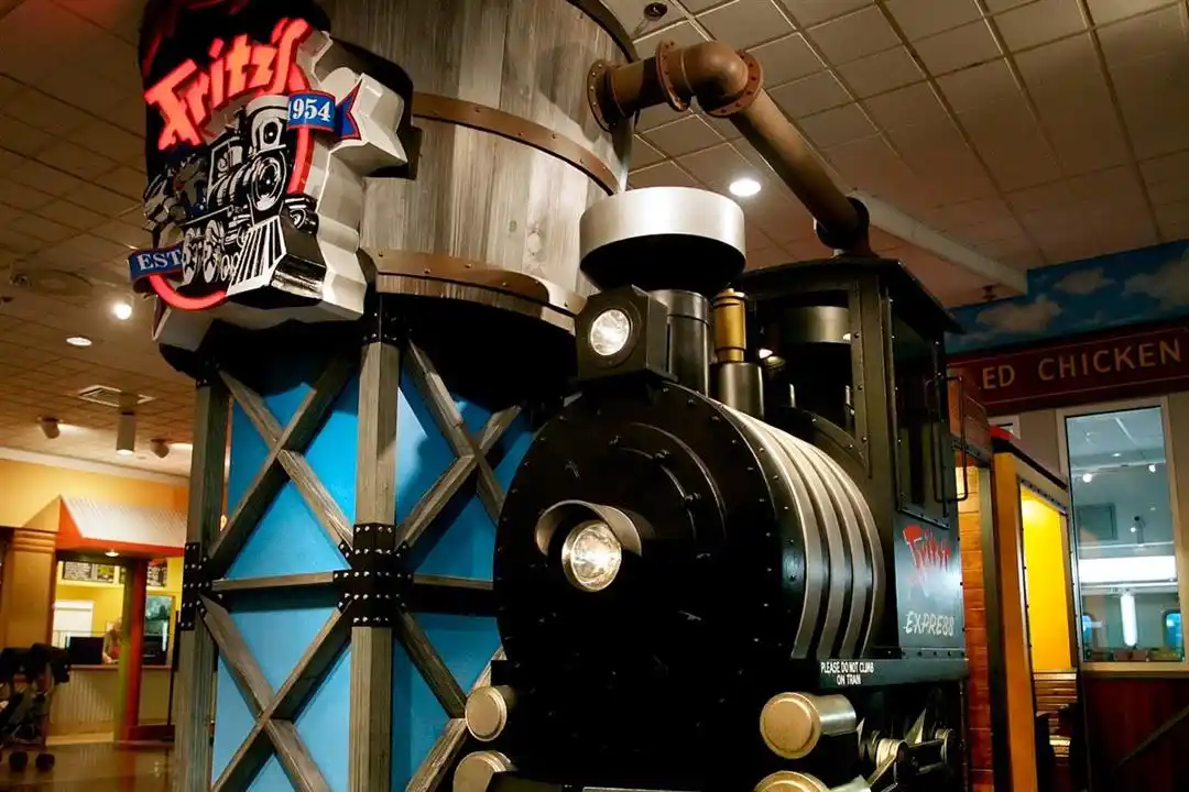 Nhà hàng chủ yếu phục vụ các món ăn nhanh phổ biến tại Mỹ như hamburger, khoai tây chiên..v..v.. Thú vị ở chỗ, khách hàng sẽ đặt món thông qua một chiếc điện thoại bàn được đặt ngay tại chỗ quý khách ngồi, sau đó một chiếc tàu hỏa mini có tên Skat Kat sẽ khởi động và giao thức ăn đã đặt đến tận bàn cho thực khách. Chính vì loại hình này, Fritz’s Railroad không chỉ được trẻ em yêu thích mà còn được không ít người lớn ghé qua, mong muốn trải nghiệm như thời thơ ấu.