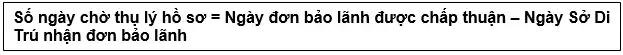 Khoảng thời gian hồ sơ đang chờ xử lý là số ngày kể từ ngày hồ sơ được nộp đúng quy trình (ngày nộp đơn) và ngày được chính thức phê duyệt. Công thức tính khoảng thời gian chờ thụ lý hồ sơ như sau: