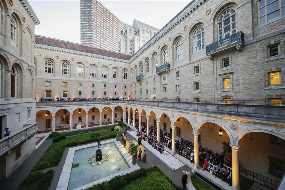 Đám cưới bên trong sân vườn của thư viện công cộng Boston