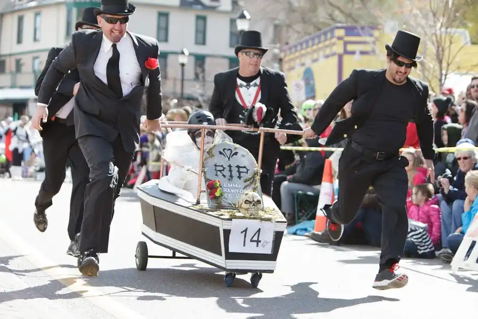 Cuộc đua quan tài nhằm tưởng nhớ Emma Crawford – một người phụ nữ đã sống ở đây vào thế kỷ XIX sau khi quan tài của người phụ nữ quá cố đã bị kéo xuống núi do sự cố lở đất. Khi tham gia vào cuộc đua quan tài này, người chơi sẽ trang trí cổ quan tài thật đẹp mắt, sau đó sẽ chia thành nhiều đội để đẩy quan tài này vòng quanh những khu phố.