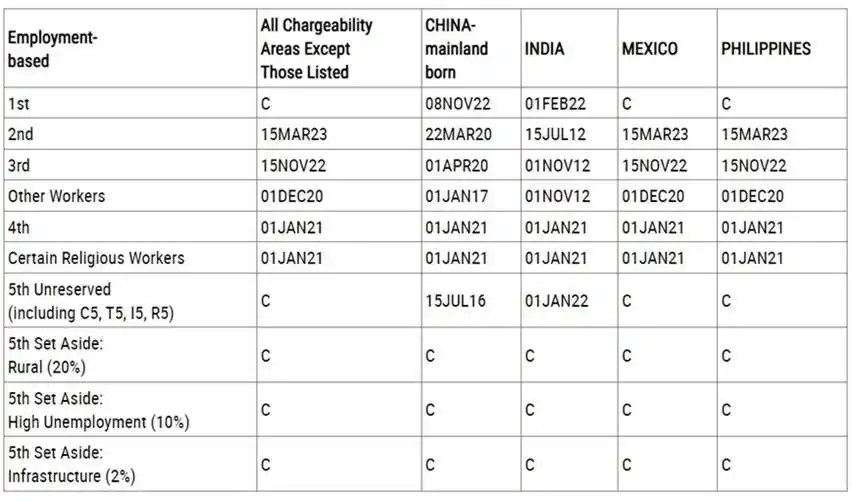 Ở hạng mục thị thực không dành riêng, ngày hành động cuối cùng cho đương đơn Trung Quốc và Ấn Độ vẫn không thay đổi so với tháng trước. Mặt khác, các quốc gia còn lại bao gồm cả Việt Nam đều hiển thị trạng thái “Đang hiện hành – Current (C)”.