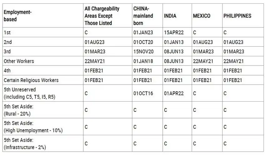 Ở hạng mục thị thực không dành riêng, ngày hành động cuối cùng cho đương đơn Trung Quốc và Ấn Độ vẫn không thay đổi so với tháng trước. Mặt khác, các quốc gia còn lại bao gồm cả Việt Nam đều hiển thị trạng thái “Đang hiện hành – Current (C)”.