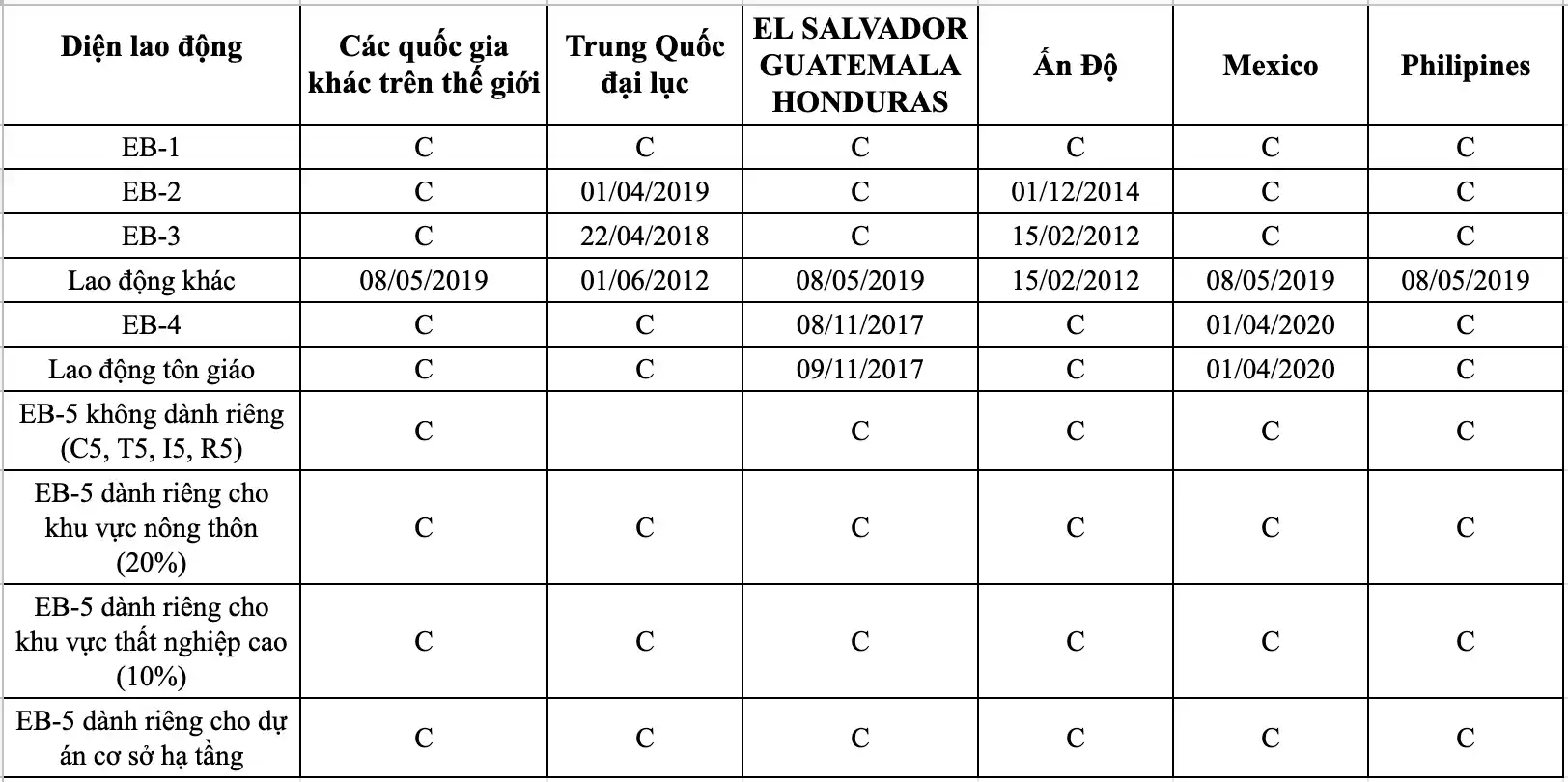 Bản tin chiếu khán di dân tháng 8/2022. Nguồn: Bộ Ngoại giao Mỹ