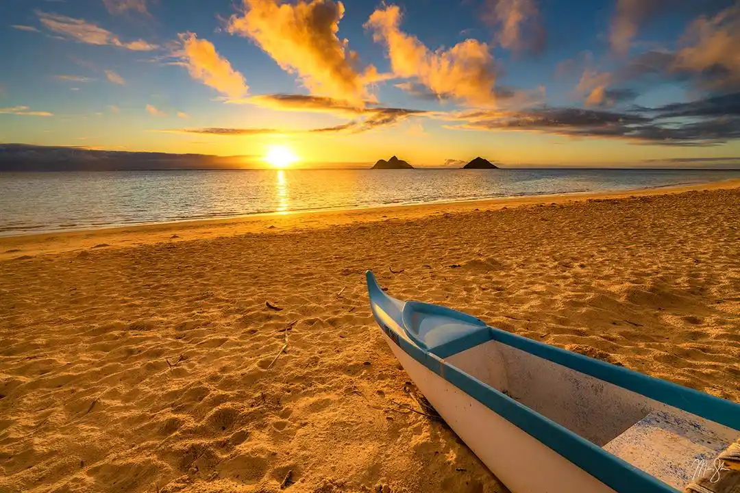 Nơi bạn đang du lịch là Hawaii – một tiểu bang nổi trội với quang cảnh thiên nhiên biển đẹp như tranh vẽ. Vì thế, bạn chắc chắn không thể bỏ qua việc dậy thật sớm để có thể ngắm nhìn bình minh trên biển Hawaii. Ở Hawaii có rất nhiều biển đẹp, nhưng nổi bật trong đó là Lanikai ở đảo Oahu – nơi có mặt nước một màu xanh biếc và bãi cát trắng phau. Tại bãi biển này còn có cả hai hòn đảo là Moku Nui và Moku Iki vô cùng độc đáo, được nhiều du khách chụp ảnh làm kỉ niệm cùng ánh bình minh.