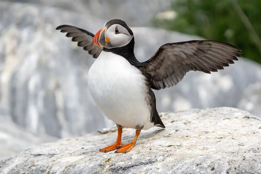 Loài chim này còn có một tên gọi khác là vẹt biển, là một loại chim có chiều cao thấp và tròn trịa, sống tập trung chủ yếu ở vùng biển. Thông thường, hải âu mỏ sáng Đại Tây Dương thường tập trung tại bãi đá ngoài khơi xa của bờ biển Maine làm nơi sinh sản vào mùa xuân và mùa hè. Chính vì thế, cách thức dễ dàng nhất để ngắm loài hải âu này là bằng thuyền. Nhiều công ty du lịch đã khai thác chặng du lịch đến Khu bảo tồn động vật hoang dã quốc gia tại quần đảo ven biển Maine mỗi ngày, phục vụ du khách đến chiêm ngưỡng loài chim này.