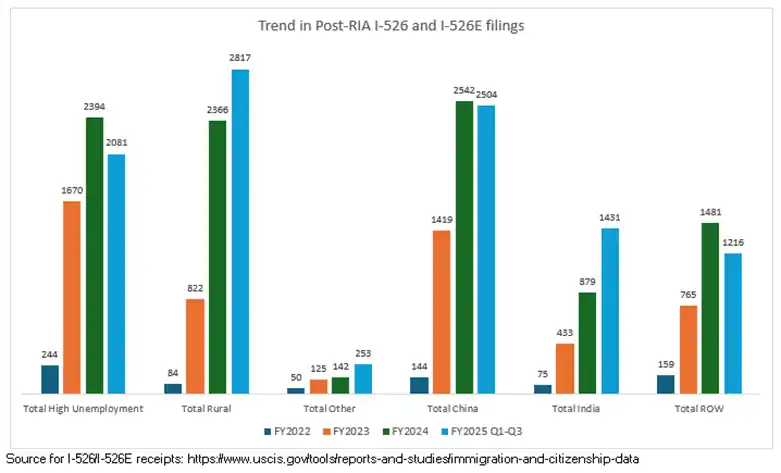 Cạnh tranh từ "Phần còn lại của Thế giới" (ROW): Các nhà đầu tư Trung Quốc và Ấn Độ không chỉ phải chờ đợi sau những người nộp đơn trước, mà còn phải cạnh tranh với các nhà đầu tư ROW nộp đơn sau nhưng vẫn có thể được ưu tiên do giới hạn visa mỗi quốc gia.