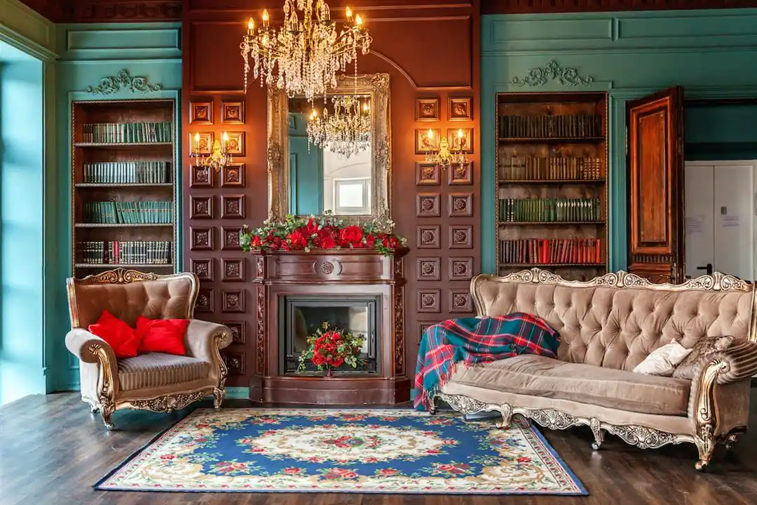 Khi bước vào một ngôi nhà theo phong cách Victorian, bạn sẽ bị choáng ngợp bởi sự kết hợp giữa những nội thất xa hoa như đèn chùm pha lê, tranh treo tường đầy tinh xảo và những vật dụng khác nhuốm màu thời gian. Phong cách Victorian chủ yếu sử dụng các tông màu như đỏ, xanh lục và tím với tông tối màu để tạo nên không gian sang trọng nhất có thể.