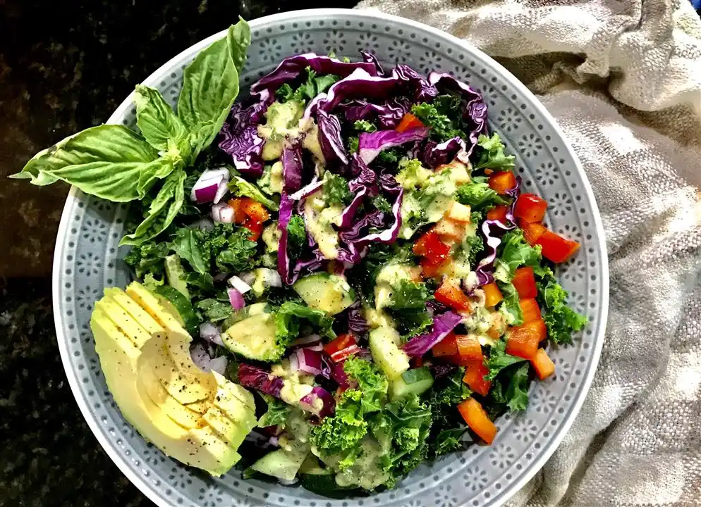 Kale Salad là món ăn hàng đầu ở Mỹ dành cho người ăn chay. Kale, hay còn gọi là cải xoăn đã trở thành thực phẩm ăn chay số một tại Mỹ nhờ vào hàm lượng dinh dưỡng cao và mang nhiều lợi ích cho sức khỏe.
